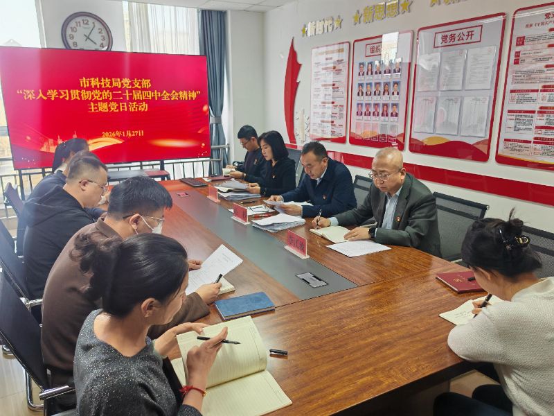为深入学习贯彻党的二十届中央委员会第四次全体会议精神,抓好“十五五”开局各项工作任务,推动学习成果转化为科技工作实效。1月27日下午,市科技局党支部开展以“深入学习贯彻党的二十届四中全会精神”主题党日活动。
