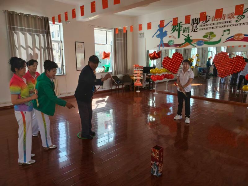 活动现场氛围热烈,精彩环节轮番上演。首先,欢乐艺术团带来集体舞蹈《幸福中国一起走》,演员们以整齐的舞姿、饱满的热情,传递出各族群众携手奋进的精神,赢得现场阵阵掌声;随后,艺术团成员献上独唱《我爱你中国》,嘹亮歌声中满含爱国情怀与民族自豪感,引发全场情感共鸣。文艺表演后,互动环节氛围愈发火热。“你来比划我来猜”游戏中,大家组队参与,趣味十足的互动不仅拉近了彼此距离,更增进了邻里情;传统游戏“投壶”则让大家沉浸式体验中华传统文化,现场欢声笑语不断,处处洋溢着团结和谐的氛围。